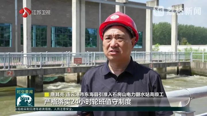 連云港市東海縣引淮入石房山電力翻水站高級工唐其亮說:“嚴格落實24小時輪班值守制度,確保設備安全高效運轉,讓寶貴的水資源持續流入沭南灌區,有效緩解當前緊張用水壓力。”