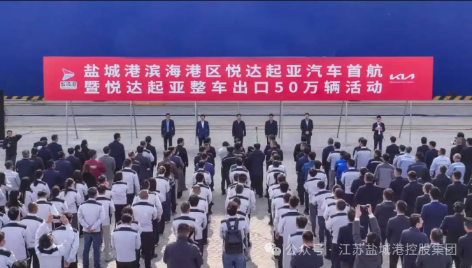 上午10時28分,隨著江蘇悅達起亞汽車有限公司的2000輛汽車有序駛入滾裝輪“格羅陽光”號,該公司出口汽車正式突破50萬輛大關。此次出口的汽車涵蓋索奈、賽圖斯、獅鉑拓界、EV5等多款燃油及新能源車型,將隨船發往韓國釜山港,后銷往世界各地。自2018年11月首次出口銷售以來,公司加快實施“新能源+出口”戰略,產品通過陸路和海上,出口至俄羅斯、斯洛伐克、捷克、印度、越南等全球88個國家和地區,出口銷量穩居國內合資車企前三?!罢躯}城市的全力投入資金、提供全方位支持,才取得整車出口突破50萬輛的成就。”公司總經理金京鉉表示,作為代表鹽城的企業,悅達起亞滿懷自豪與責任,未來將繼續奮勇向前,積極構建更強大的汽車產業鏈,為推動鹽城發展成為國際化的汽車產業城市作出更多貢獻。