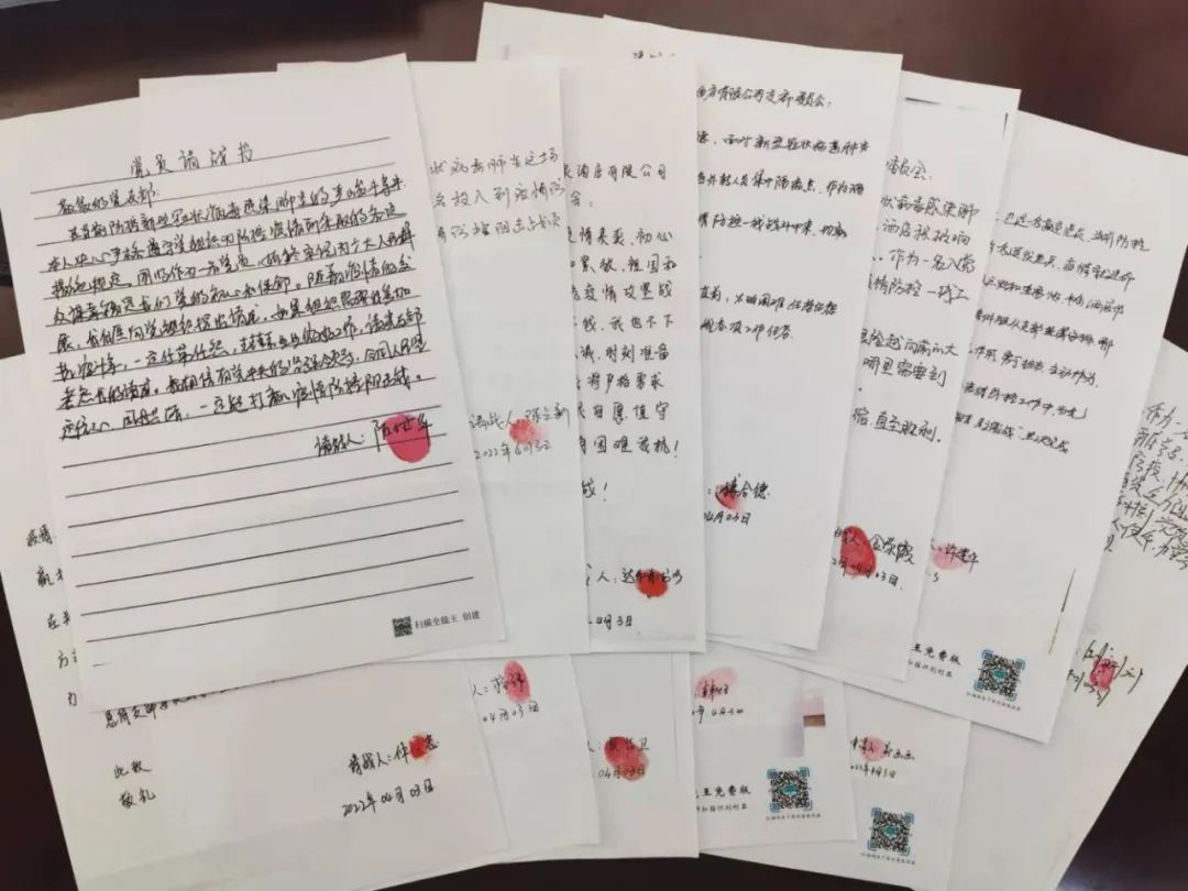 “我請愿:自愿參加酒店一線防疫工作,充分發(fā)揮黨員先鋒帶頭作用,堅決打贏疫情防控阻擊戰(zhàn)。”“我請愿:做嚴明紀律的踐行者,做擔當履職的戰(zhàn)斗員,請領(lǐng)導(dǎo)批準我參與此次隔離任務(wù)。”“我是一名入黨積極分子,我志愿參與酒店疫情防控任務(wù),請讓我上一線”……一封封按著紅色手印的《請戰(zhàn)書》被遞交到鹽城港文旅集團旗下半島溫泉酒店黨支部。