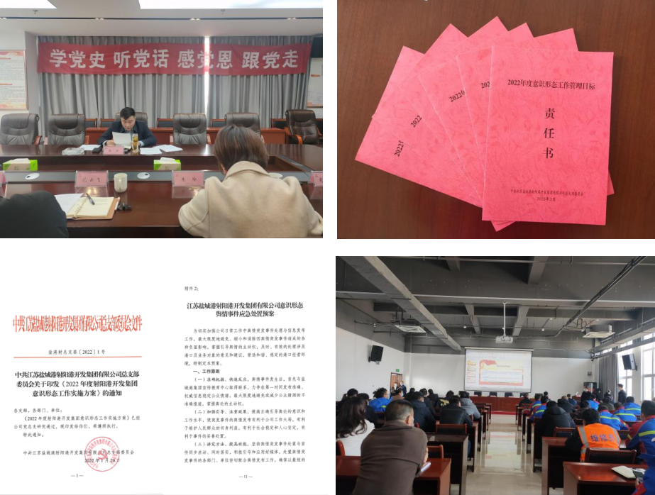 一是履行主體責任。黨總支專題研究意識形態工作2次。二是加強組織領導。成立領導小組,簽訂責任書,制定工作實施方案和意識形態輿情事件應急處置預案。三是抓好教育引導。書記上意識形態專題黨課1次,用先進人物、典型事件引導員工樹立思想觀、人生觀、價值觀。四是抓實輿論宣傳。公司電子顯示屏流動宣傳主旋律,集團公眾號宣傳報道105篇、其他媒體16篇次。