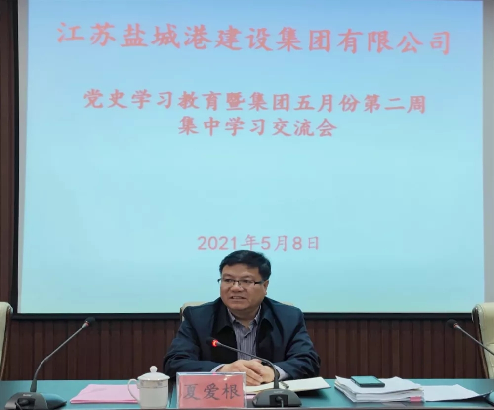 5月8日,鹽城港建設集團開展黨史學習教育暨集團五月份第二周集中學習交流會議。建設集團黨委書記夏愛根出席并講話,集團副總經理王志強主持,建設集團領導班子成員、各部門負責人、各港區辦事處負責人以及各下屬公司班子成員參加。