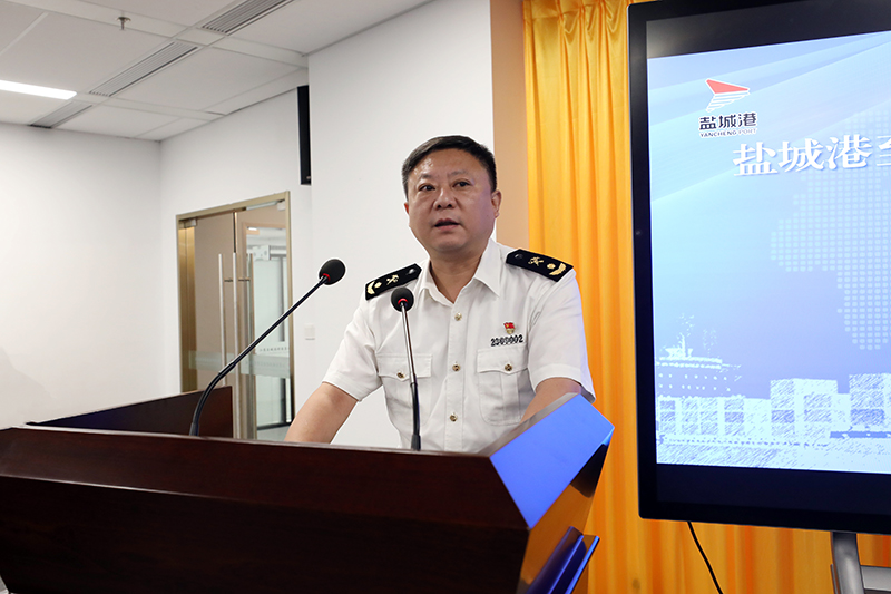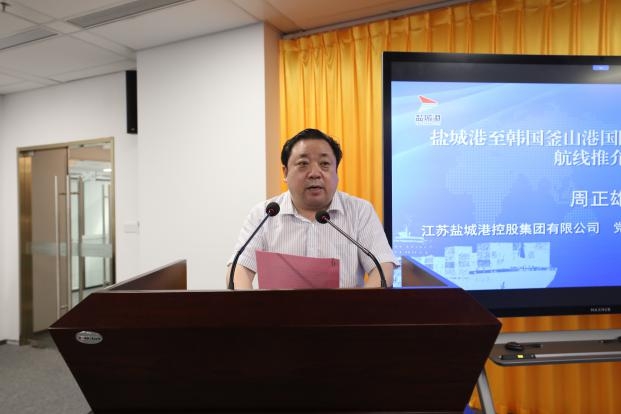周正雄在致辭中表示,鹽城港至韓國釜山集裝箱班輪航線的開通,將充分激活鹽城港大豐港區作為中韓(鹽城)產業園唯一臨港配套區的政策和區位優勢,開辟出一條綠色、集約、便捷、高效的對韓物流新通道。同時,也將進一步提升鹽城港的服務能力和水平,顯著降低腹地企業的物流成本和時間成本,實現經濟效益和社會效益的雙豐收。希望能以此條航線為紐帶,與各位企業家和衷共濟、密切協作,攜手并進、互利共贏。