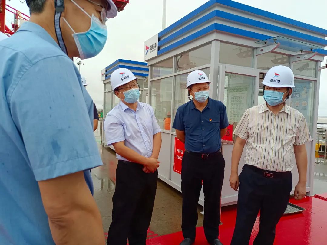 督查組實地察看了鹽城港大豐港區集裝箱碼頭,詳細了解港區疫情防控及外貿服務專班的管理情況,并對港區碼頭“三區二通道”的規范設置和管理給予肯定。