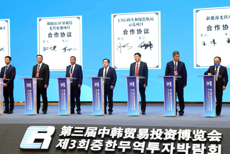 10月29日,第三屆中韓貿易投資博覽會暨江蘇—韓國企業家交流會在鹽城國際會展中心開幕。集團黨委書記、董事長、總經理周正雄參加會議,并代表集團與中海油江蘇天然氣公司進行簽約。