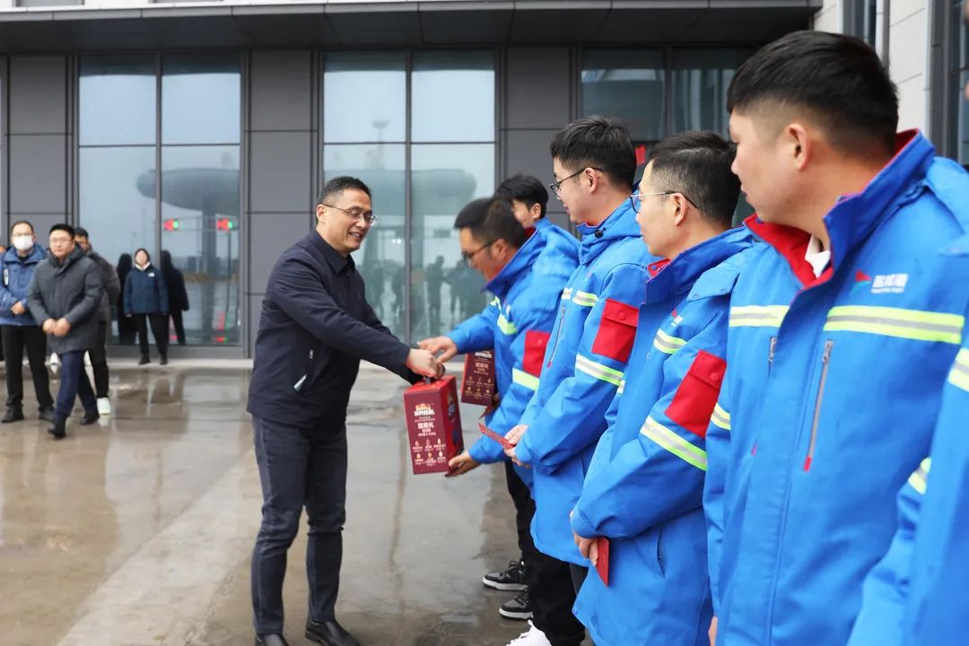 1月22日,大年初一,碼頭一線到處洋溢著節(jié)日喜慶氣氛。受集團(tuán)黨委、董事會(huì)委托,當(dāng)天上午,集團(tuán)黨委副書記、董事、總經(jīng)理陸帥率隊(duì)前往大豐港區(qū)看望慰問堅(jiān)守在一線工作崗位的工作人員,代表集團(tuán)黨委、董事會(huì)向他們致以新春的祝福和節(jié)日的問候。鹽城海關(guān)二級(jí)高級(jí)主辦李健,集團(tuán)副總經(jīng)理袁欣等參加。