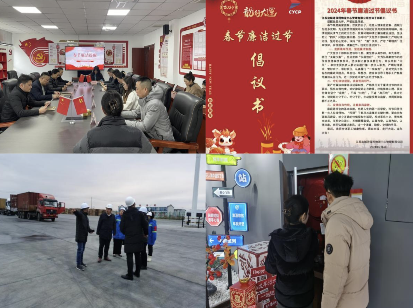 春節將至,鹽城港集團各二級單位精心部署,協調聯動,圍繞廉潔宣傳教育、安全生產檢查,多措并舉促使干部職工克服麻痹思想,樹立底線思維,強化紅線意識,擰緊安全、廉潔兩根“弦”,確保春節假期和諧平安。
