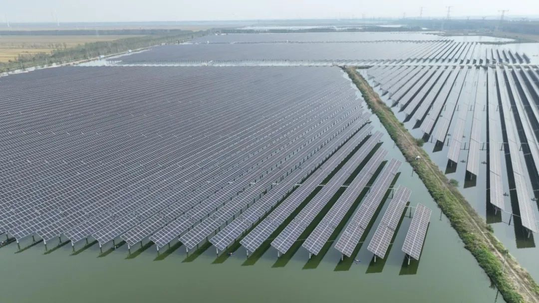 項(xiàng)目總投資15.8億元,是江蘇省能源類重點(diǎn)工程和鹽城市重點(diǎn)工程項(xiàng)目,由鹽城港集團(tuán)與悅達(dá)集團(tuán)共同投資,采用“一地兩用、漁光互補(bǔ)”模式,最大化綜合利用陽光、水體等資源,打造了“上可發(fā)電、下可養(yǎng)魚”的集光伏發(fā)電、現(xiàn)代高效漁業(yè)養(yǎng)殖于一體的示范項(xiàng)目。