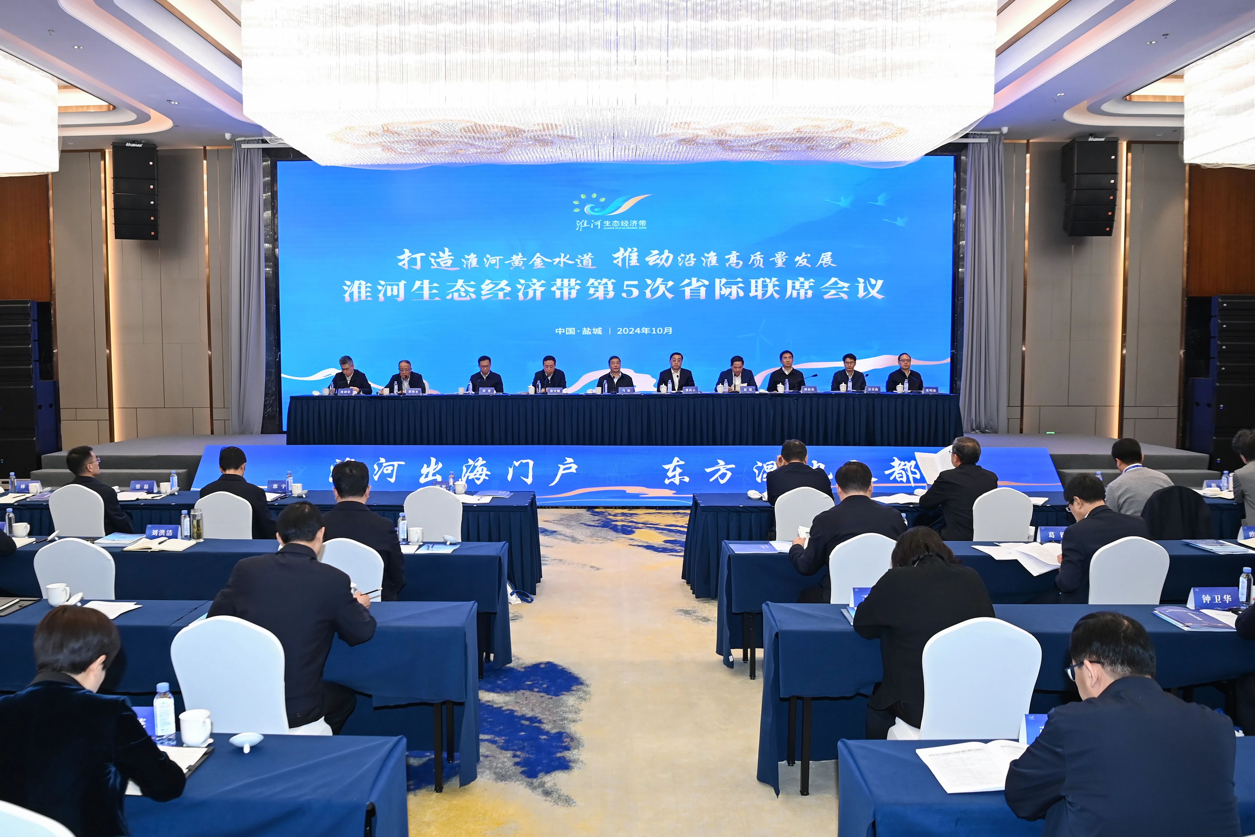 10月29日上午,淮河生態經濟帶第五次省際聯席會議在我市召開,總結交流沿淮地區協同發展工作經驗,謀劃新一輪省際重點合作事項,推動淮河生態經濟帶高質量發展。省委常委、常務副省長馬欣主持會議。安徽省委常委、常務副省長費高云,河南省委常委、常務副省長孫守剛,山東省副省長溫暖,湖北省副省長彭勇,國家發展改革委區域協調發展司副司長韓振海,生態環境部淮河流域生態環境監督管理局副局長程緒水,水利部淮河水利委員會副主任吳貴勤,市委副書記、市長張明康出席會議。