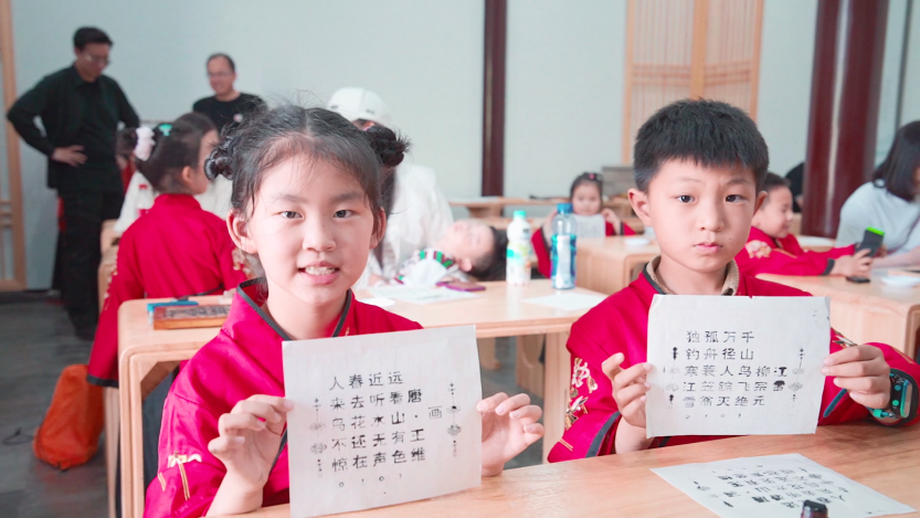 在小瀛臺國學館里,小朋友們穿著漢服走進國學課堂,悉心聆聽國學老師講解,學習活字印刷,將自己熟悉的古詩詞用一枚枚活字排列出來,在老師耐心的技術指導下,家長們也興致高漲地參與進來,從揀字到排版再到印刷,古老的印刷工藝被完美展現。