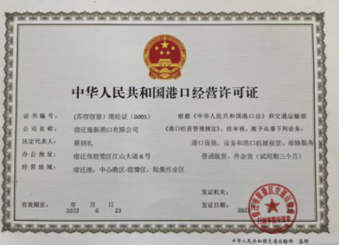 3月26日,獲得宿遷市交通行政主管部門頒發的老碼頭試運營許可證;