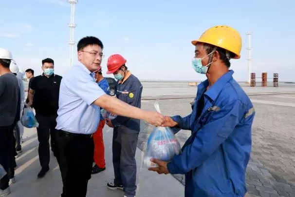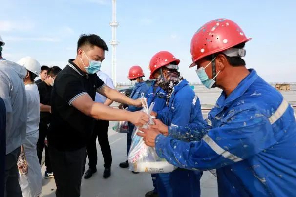 為慰問一線高溫工作人員,鹽城港大豐港區(qū)組織慰問隊伍開展“戰(zhàn)高溫·保進度”慰問活動,將防暑降溫大禮包帶進鹽城港自動化集裝箱堆場現(xiàn)場,送到每一位職工手中,感謝職工們的辛勤付出。