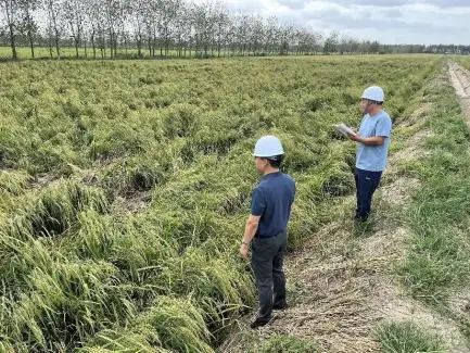 抓好受災(zāi)農(nóng)業(yè)生產(chǎn)恢復(fù)。受強(qiáng)風(fēng)和強(qiáng)降雨影響,大量農(nóng)田受淹、農(nóng)作物倒伏(水稻、高粱、玉米等)、林木傾斜。針對(duì)受災(zāi)情況,農(nóng)業(yè)科技集團(tuán)各轄區(qū)立即組織搶險(xiǎn)隊(duì)伍,配合種植戶、養(yǎng)殖戶開展生產(chǎn)恢復(fù)工作,對(duì)積水的農(nóng)田及時(shí)開溝排水,對(duì)倒伏農(nóng)作物及時(shí)進(jìn)行扶正及管護(hù),對(duì)傾斜樹木及時(shí)扶正固定樹體。與此同時(shí),加強(qiáng)農(nóng)業(yè)技術(shù)指導(dǎo)服務(wù),圍繞農(nóng)作物種植、畜禽養(yǎng)殖、水產(chǎn)養(yǎng)殖等重點(diǎn)領(lǐng)域發(fā)布病蟲害防治技術(shù)指南,確保災(zāi)后不發(fā)生二次傷害。