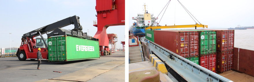 “嗚……”隨著汽笛的一聲長鳴,滿載集裝箱的“大港集003”號貨輪緩緩駛?cè)臌}城港響水港區(qū)5#泊位碼頭,貨船上的工作人員向岸邊拋出系泊纜繩固定貨船,碼頭上等待已久的吊機開始作業(yè),有條不紊地將集裝箱裝卸到拖車上。至此鹽城港響水港區(qū)至重慶果園港內(nèi)河集裝箱班輪航線試運營成功,這是響水港區(qū)從“無”到“有”首次迎來的集裝箱貨輪。同時標志著通榆河段阜寧至響水正式開通內(nèi)河集裝箱運輸,掀開了鹽城港響水港區(qū)與阜寧港區(qū)“港港聯(lián)動”的全新篇章。