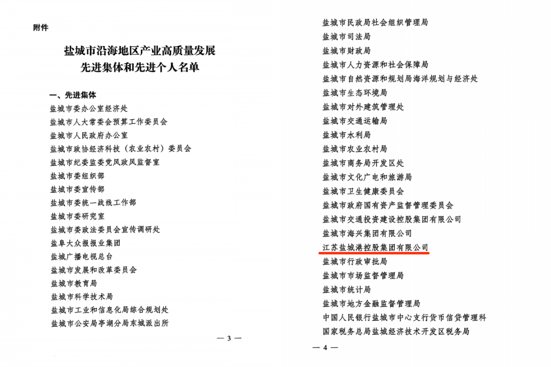 近日,市委、市政府發布關于表彰鹽城市沿海地區產業高質量發展先進集體和先進個人的決定,集團獲“鹽城市沿海地區產業高質量發展先進集體”榮譽稱號。