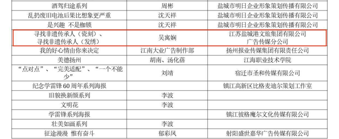 近年來,廣告?zhèn)髅椒止景l(fā)揮巾幗榜樣的示范作用,她們奮斗在各個部門、各個崗位,用奮斗匯聚“她力量”、用實(shí)干撐起“半邊天”,傳遞著鹽城港女性正能量。本屆大賽獲獎的兩項(xiàng)作品《桃李滿園、品味書香》職業(yè)組公益類作品銅獎、《尋找非遺傳承人》職業(yè)組公益類作品優(yōu)秀獎?wù)菑V告?zhèn)髅椒止菊宫F(xiàn)“她力量”的真實(shí)寫照。