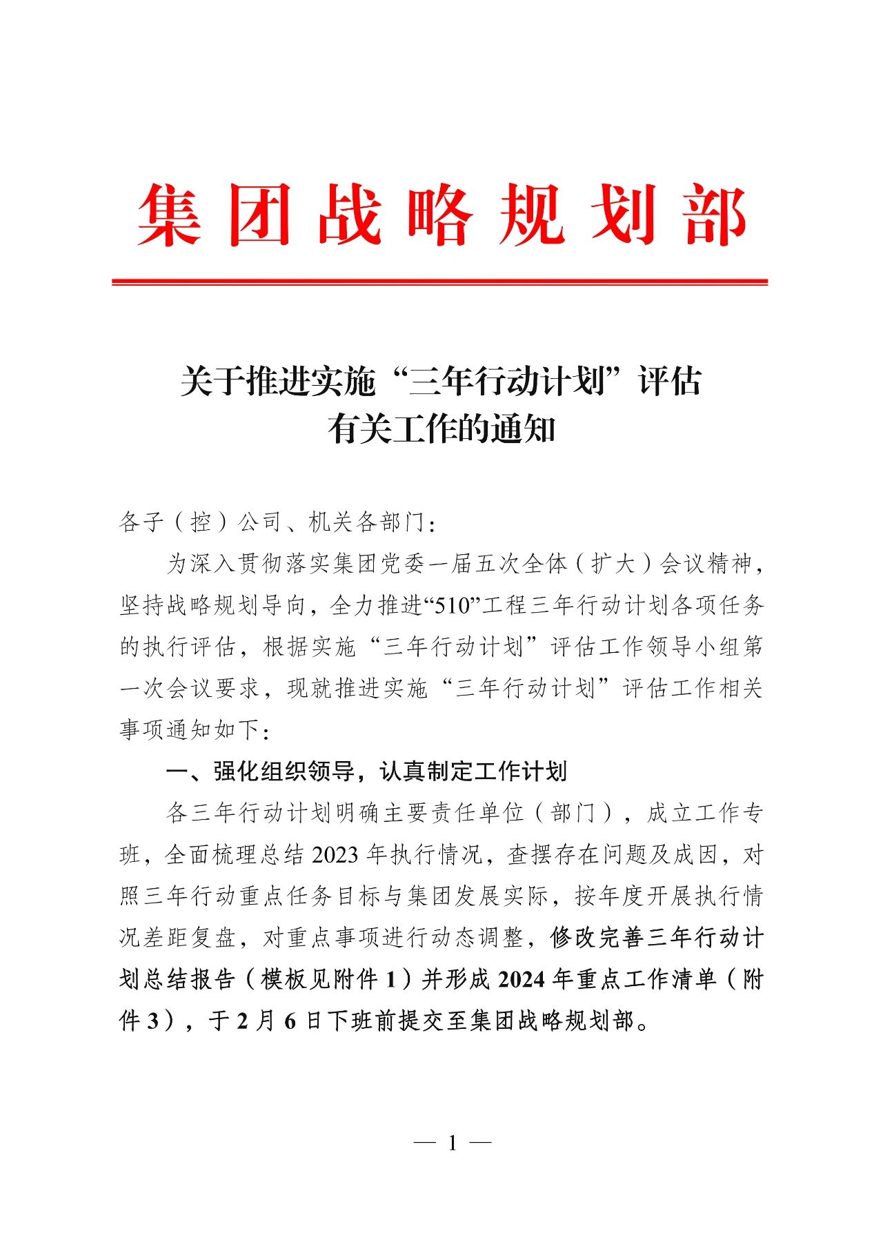 2024年是集團全面完成“十四五”規劃目標任務的關鍵之年,為深入貫徹集團黨委一屆五次全體(擴大)會議精神,在三年行動計劃上突出落地見效,以三年計劃的完成保證“十四五”各項目標任務如期實現?!叭晷袆佑媱潯痹u估工作領導小組辦公室緊緊圍繞集團三步走戰略發展總體要求,完善“專班化推進+項目化實施”運作方式,做好階段性評估,常態化督查,扎實推進“510”工程等三年行動計劃各項工作走深走實。
