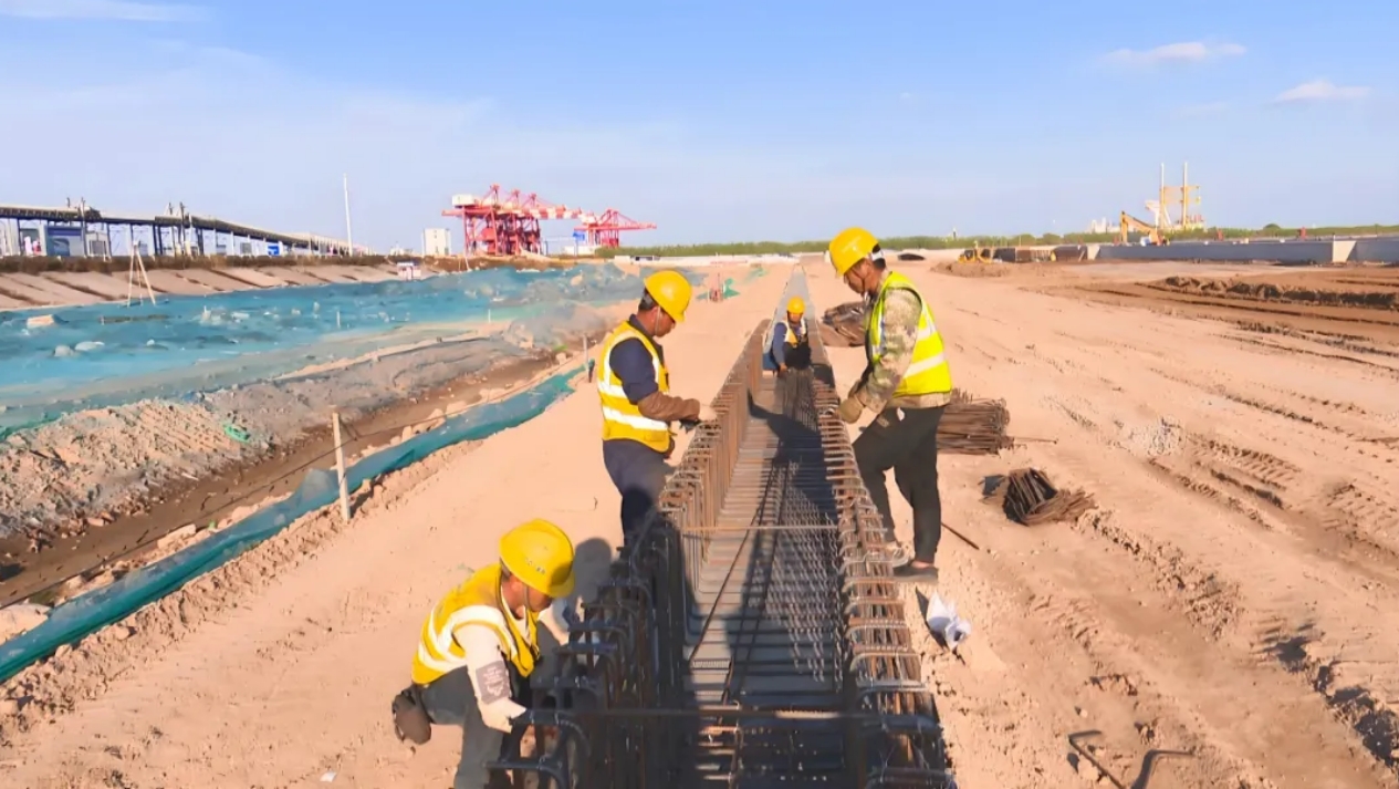 ????濱海港區主港區北區通用碼頭三期工程位于濱海港區規劃主港池北側,新建一個以裝卸散裝為主的公共碼頭,總投資約8億元,共布置10萬噸及通用泊位1個,泊位總長310m,設計通過能力為415萬噸/年,可滿足散貨每年270萬噸、件雜貨每年120萬噸的吞吐量要求。項目于2022年12月開工建設,計劃于今年12月完工。