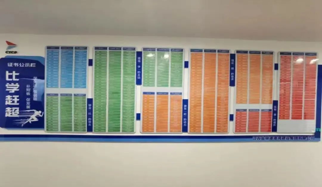 深化人才培養(yǎng),營造比學(xué)趕超濃氛圍。全面實(shí)行A/B崗制度,合理分配“老中青”隊伍,通過項目一線鍛煉和培養(yǎng)中青年骨干人才。通過設(shè)立證書公示墻,激發(fā)全員“比學(xué)趕超”的考證氛圍,共考取一級建造師、二級建造師、高級工程師、中級工程師等證書15項,著力打造港航專業(yè)隊伍。