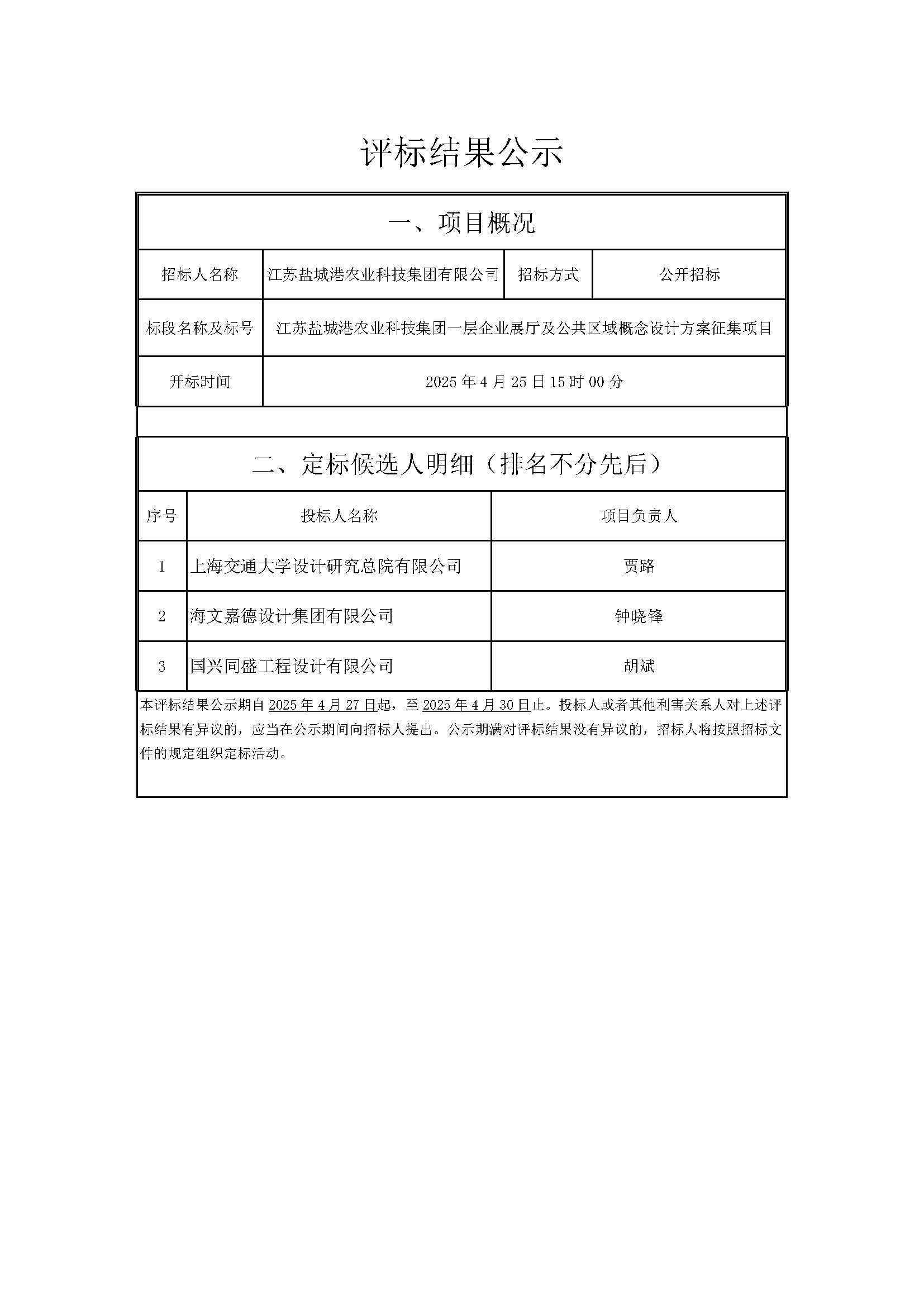 評標結(jié)果公示