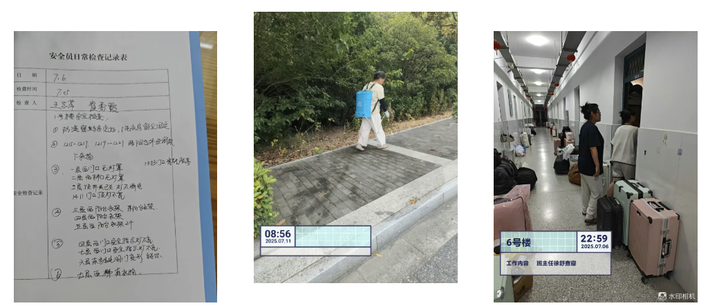 與此同時,一系列暖心服務在校園悄然上演。宿舍區設立的“行李搬運驛站”前,物業師傅們頂著烈日幫學生扛運行李;24小時報修熱線始終暢通,高效解決空調故障、水管漏水等突發問題。校園公眾號推送的《假期安全指南》圖文并茂,宿舍公告欄里的溫馨提示字跡工整,從物品保管到水電安全,細致叮囑滲透到每一個生活細節。