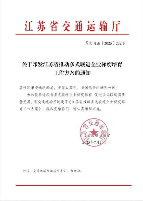 近日,江蘇省交通運輸廳出臺《江蘇省推動多式聯運企業梯度培育工作方案》,并公布第一批19家重點培育企業名錄。鹽城港集團憑借在多式聯運領域的突出成績和顯著發展潛力,成功入選“江蘇省多式聯運重點培育領軍企業名錄(專業型)”。