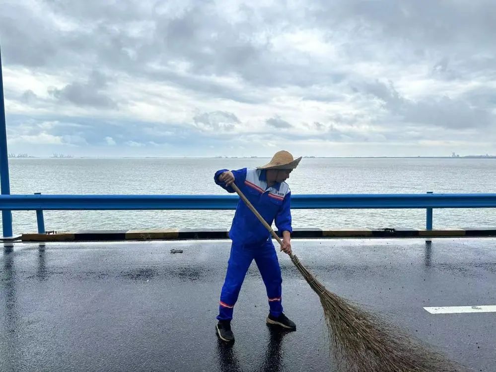 在港區(qū)的道路上,隊員們頂著烈日,清理著道路護欄和雜物垃圾。他們用“嚴真細實快”的工作作風(fēng),時刻維護著港容港貌的“高顏值”。