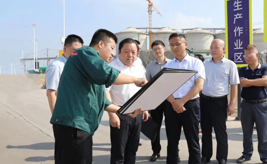 周正雄一行實地察看了建湖港區北作業區及鐵路貨場,詳細聽取運營情況匯報,并就項目規劃、業務開展等方面工作提出要求。