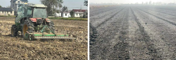 為預(yù)防連續(xù)陰雨天氣給秋播耕整帶來的“爛耕”“爛種”風(fēng)險(xiǎn),水稻收割一結(jié)束,技術(shù)人員便迅速深入田間,逐塊排查墑情。對(duì)于土壤濕度大、易積水的地塊,立即開挖排水溝,加速積水排出,降低土壤含水量,為耕整作業(yè)掃清障礙。在耕整過程中,公司嚴(yán)格執(zhí)行秸稈還田率達(dá)到100%標(biāo)準(zhǔn),將農(nóng)業(yè)廢棄物變廢為寶,既改善土壤結(jié)構(gòu),又增加有機(jī)質(zhì)含量;旋耕整地嚴(yán)格把控質(zhì)量,土壤深翻深度控制在25—30厘米,確保耕作層疏松透氣,有利于小麥根系下扎;農(nóng)機(jī)操作要求“耕翻到頭、到邊,無漏耕、無死角”,確保地塊耕整質(zhì)量均勻一致,為高質(zhì)量播種打造“優(yōu)質(zhì)土壤環(huán)境”。