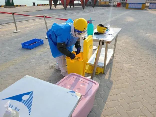 本次演練從實戰(zhàn)出發(fā),結(jié)合港口實際,檢驗港口一線防疫工作人員對核酸檢測呈陽性人員的發(fā)現(xiàn)、隔離、疫情報告、轉(zhuǎn)運、個人防護及消殺等能力。