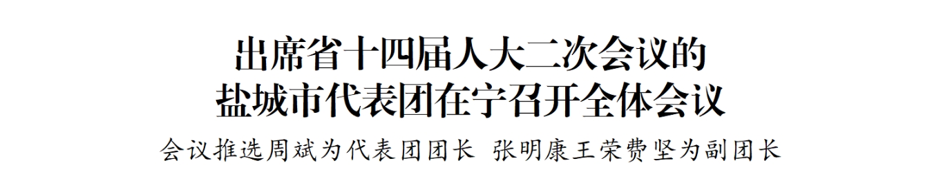 江蘇省第十四屆人民代表大會第二次會議將于1月23日上午在南京開幕。22日晚,鹽城市代表團(tuán)在駐地召開全體會議,傳達(dá)學(xué)習(xí)省兩會黨員負(fù)責(zé)同志會議精神和省委書記信長星講話要求,推選代表團(tuán)團(tuán)長、副團(tuán)長,宣布小組召集人名單,審議有關(guān)草案。