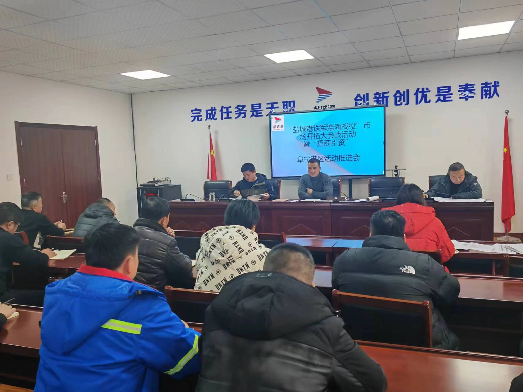 為進(jìn)一步貫徹落實(shí)新時(shí)代“鹽城港鐵軍淮海戰(zhàn)役”市場(chǎng)開拓大會(huì)戰(zhàn)誓師動(dòng)員暨招商引資推進(jìn)大會(huì)會(huì)議精神,近日大豐港區(qū)、射陽(yáng)港區(qū)等13支突擊隊(duì)陸續(xù)召開“鹽城港鐵軍淮海戰(zhàn)役”第一次工作會(huì)議。
