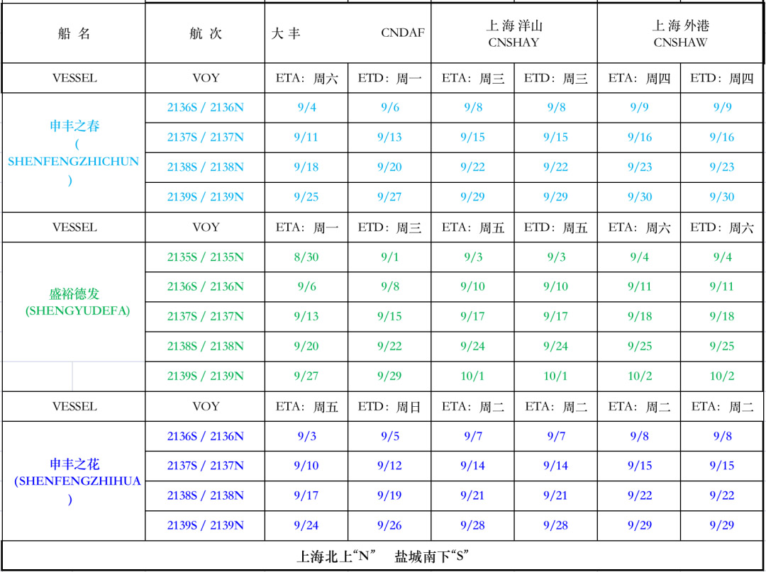 鹽城港大豐港區(qū)------上海港(洋山/外港)