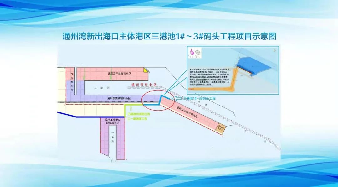 去年底,通州灣新出海口主體港區三港池1#—3#碼頭開工,項目可滿足沿江、沿海產業對大型碼頭中轉的迫切需求。南通港集團建設投資有限公司副總經理尹進軍表示,到2025年,以服務長江經濟帶集裝箱等貨物中轉運輸和臨港工業并重的新出海口初步建成,港口設施能力進一步提升、服務功能進一步健全、集疏運體系進一步完善。