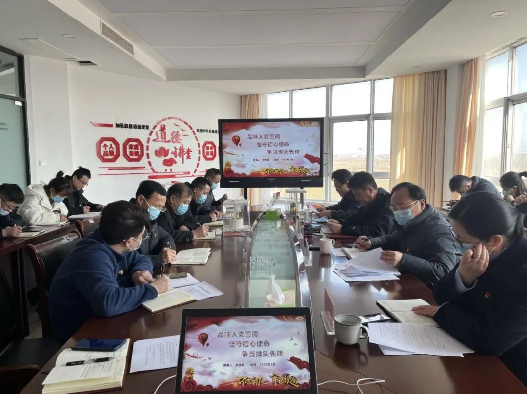 “我志愿加入中國共產黨,擁護黨的綱領,遵守黨的章程……”,響水港區黨總支書記帶領全體黨員面對黨旗,重溫入黨誓詞,進一步堅定理想信念。鏗鏘有力的宣誓聲響徹室內,現場所有人都深受感染,仿佛回到了那個風雨如磐的年代。