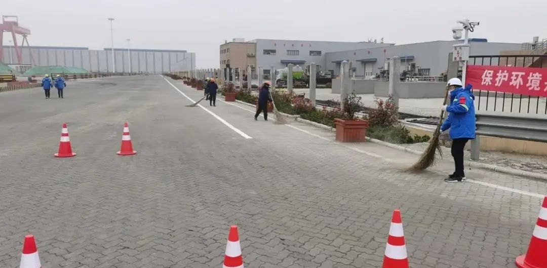 本次環境治理演練以實戰模擬方式進行,在現場總指揮發出演練開始指令后,按照公司環境治理應急預案中環境治理突擊檢查事件處置方案,碼頭現場各級人員立即執行現場環境治理措施。各部門根據演練方案、各司其職、快速響應。生產部迅速組織人員安排分工,人員、機械立即進入分工區域進行打掃;倉儲部立刻啟動場地噴淋裝置、安排灑水車作業,確保廠區道路、場地、碼頭不起揚塵;市場部、技術部人員拿起掃帚、鐵鍬在分管區域進行清掃;安環部在現場開展巡查,及時調整人員對局部區域進行清掃。在所有人員的共同努力下,演練按照既定方案有序開展,達到了預期效果。