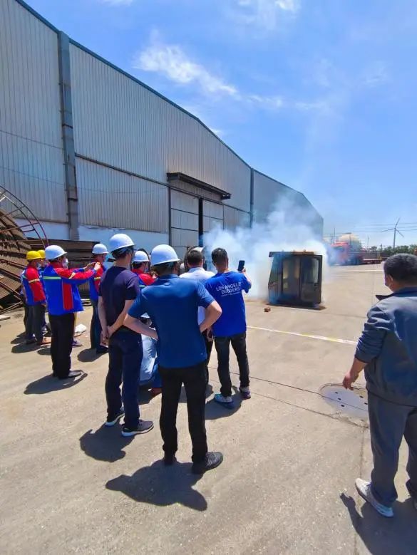 活動(dòng)結(jié)束后,港機(jī)公司組織全體員工參與了流動(dòng)機(jī)械設(shè)備滅火演練。演練分為氣體滅火和干粉滅火兩個(gè)實(shí)驗(yàn)階段。通過(guò)實(shí)驗(yàn),干粉自動(dòng)滅火實(shí)驗(yàn)對(duì)于流動(dòng)機(jī)械設(shè)備的火患具有更良好的滅火效果,可有效阻止火勢(shì)蔓延,最大程度減少損失。