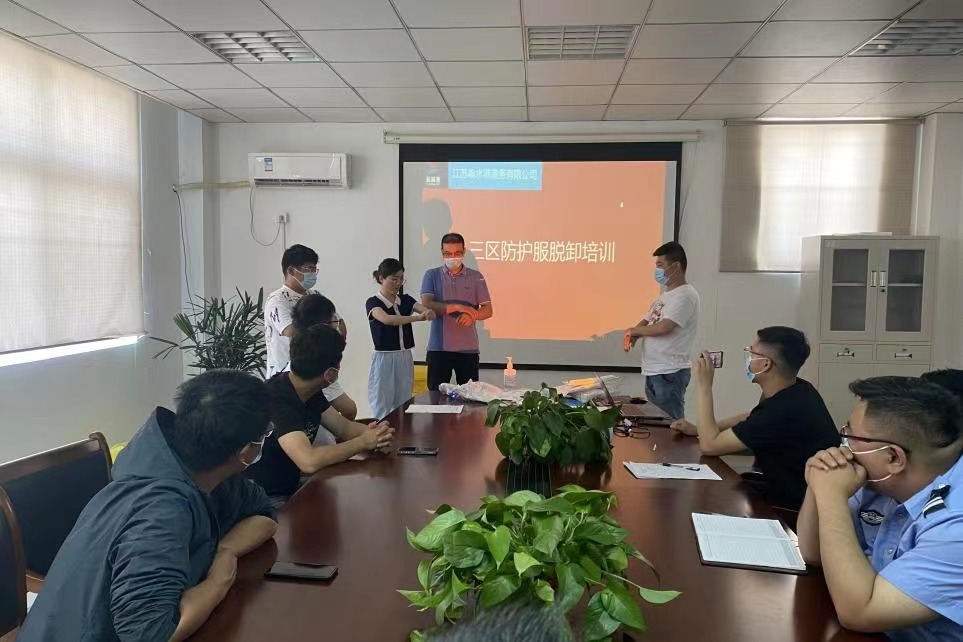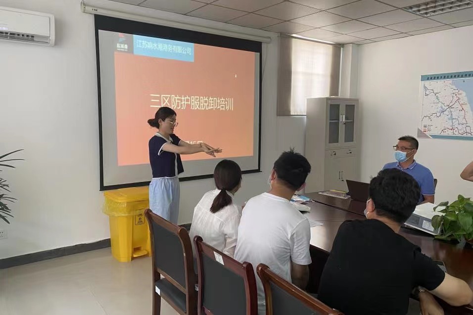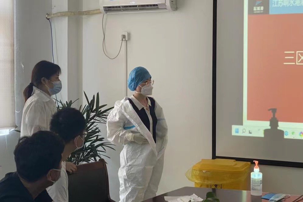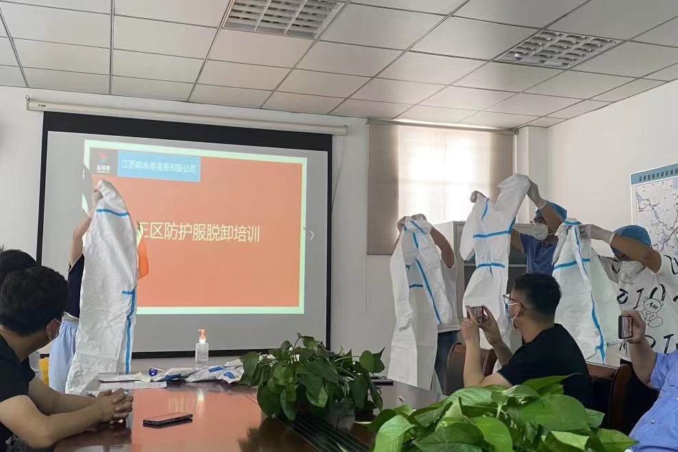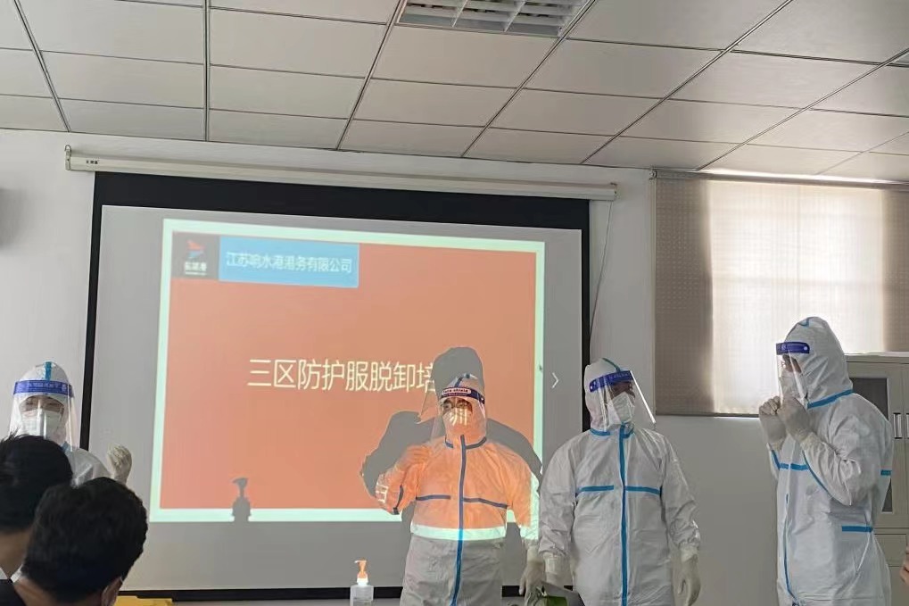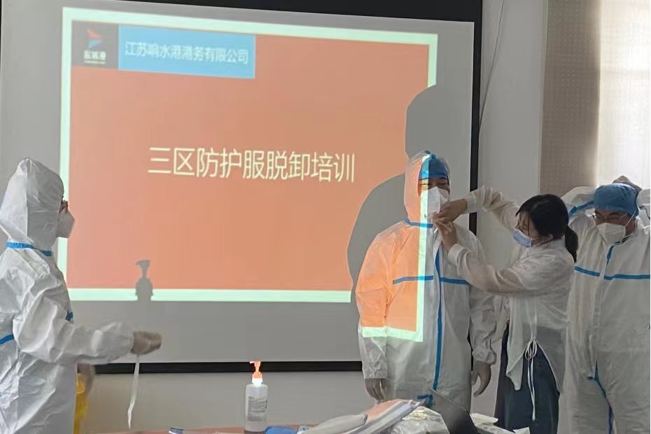 為堅(jiān)決打好新型冠狀病毒疫情防控阻擊戰(zhàn),全面提高應(yīng)對(duì)疫情的響應(yīng)能力,熟悉應(yīng)急處置具體流程,從嚴(yán)抓好疫情防控工作,近日,響水港區(qū)港務(wù)公司特邀響水縣港城醫(yī)院專職醫(yī)護(hù)人員,對(duì)港區(qū)作業(yè)人員進(jìn)行疫情防控相關(guān)的三區(qū)防護(hù)服穿脫消殺培訓(xùn)。
