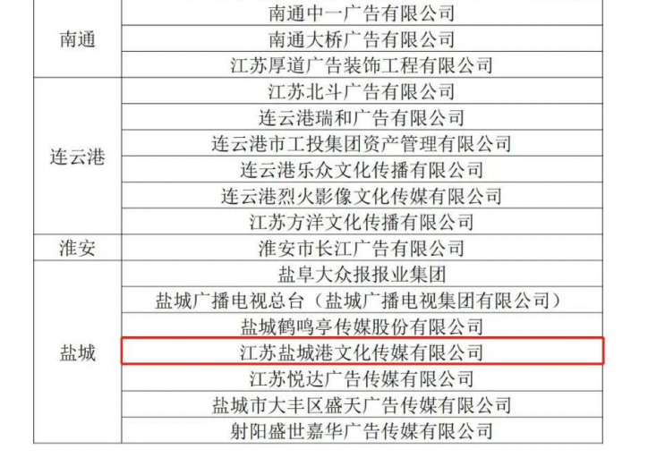 7月16日,2021年度江蘇省廣告行業廣告發布誠信單位評選結果公布,江蘇鹽城港文旅集團文化傳媒公司再獲榮譽稱號。