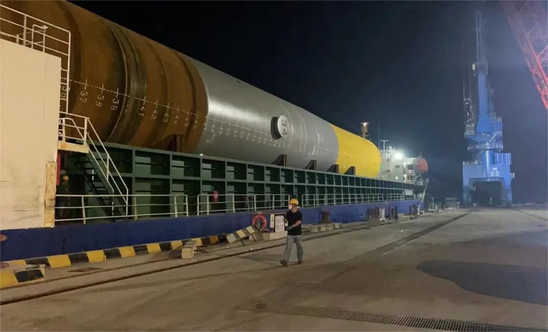 這是鹽城港使用SPMT模塊車滾裝作業的單體最大鋼管樁