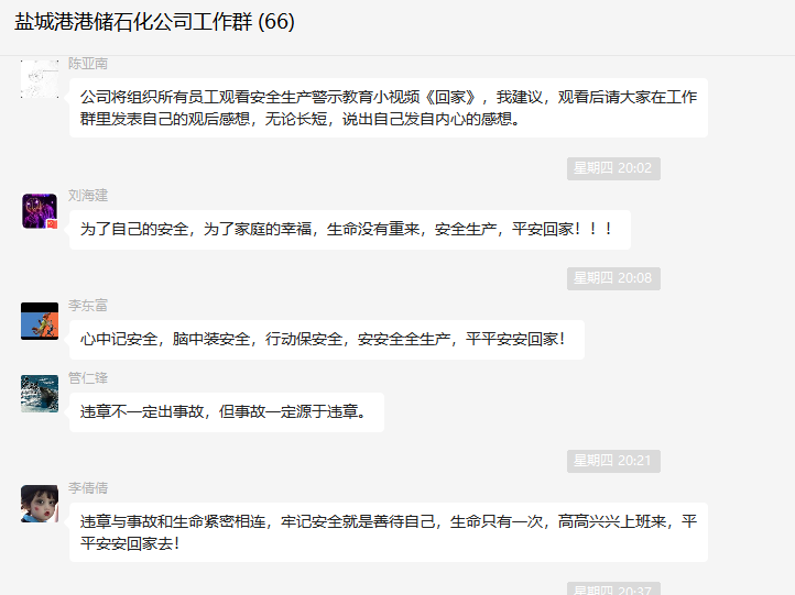 港儲石化利用班前晨會時間,組織職工觀看安全生產警示教育視頻,進一步增強職工風險防范意識,牢固樹立起“沒有安全,一切都是零”的思想觀念。職工紛紛表達了對安全生產的決心和對安全生產堅定不移的信念,在思想上完成“要我安全”到“我要安全”的轉變。