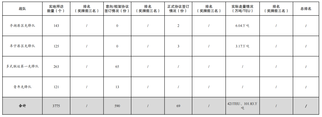 活動開展以來,累計拜訪客戶數量3775家,簽訂意向/框架協議數量590份,簽訂正式協議69份,實際走量421TEU、101.83萬噸。